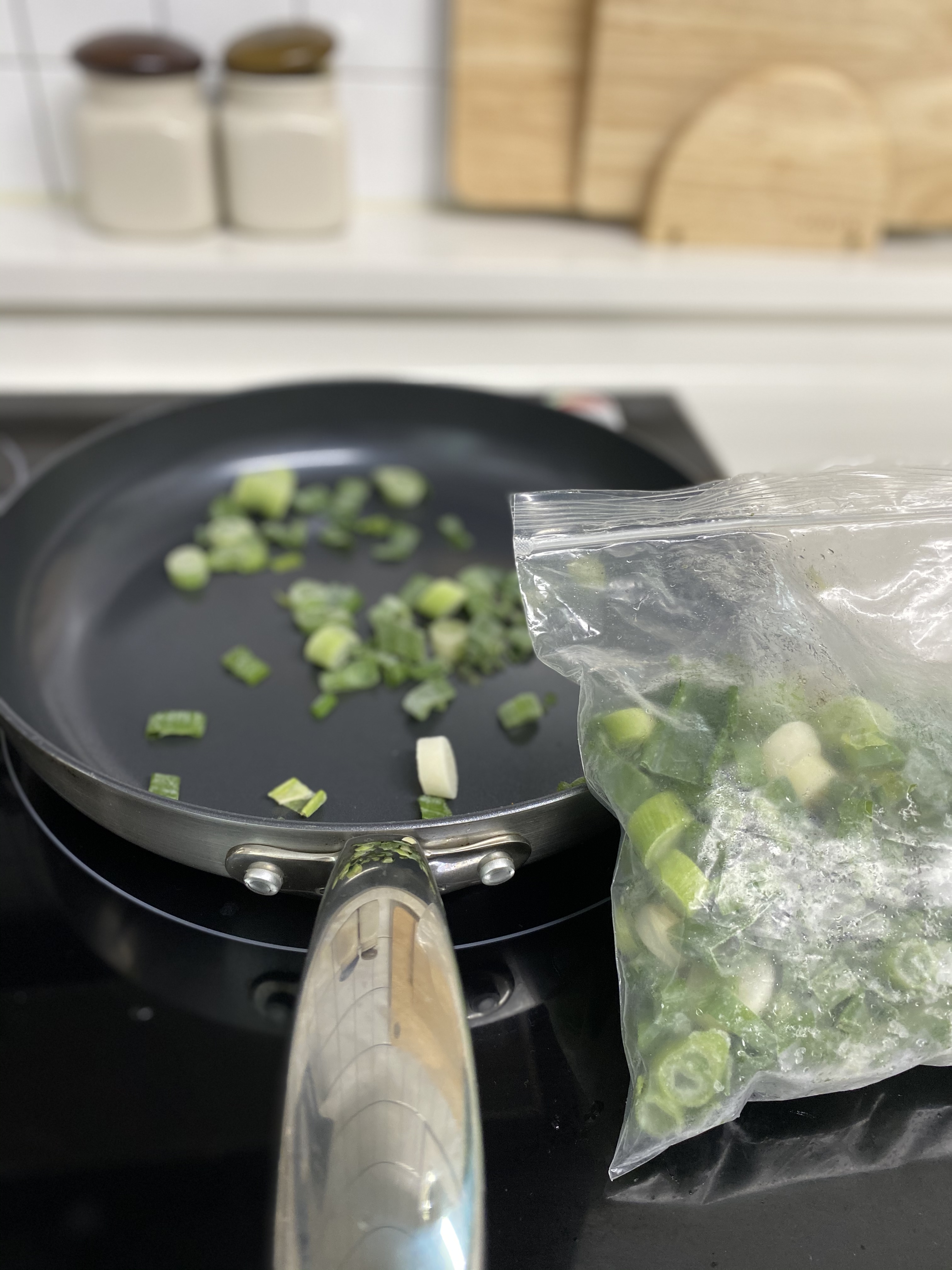 먼저 미리 썰어 놓은 대파를 냉동실에서 꺼낸 후 파기름을 만든다. 이때 고추랑 당근을 살짝 볶으면서 양파도 넣어주면 향기도 좋고, 맛도 깊어진다.