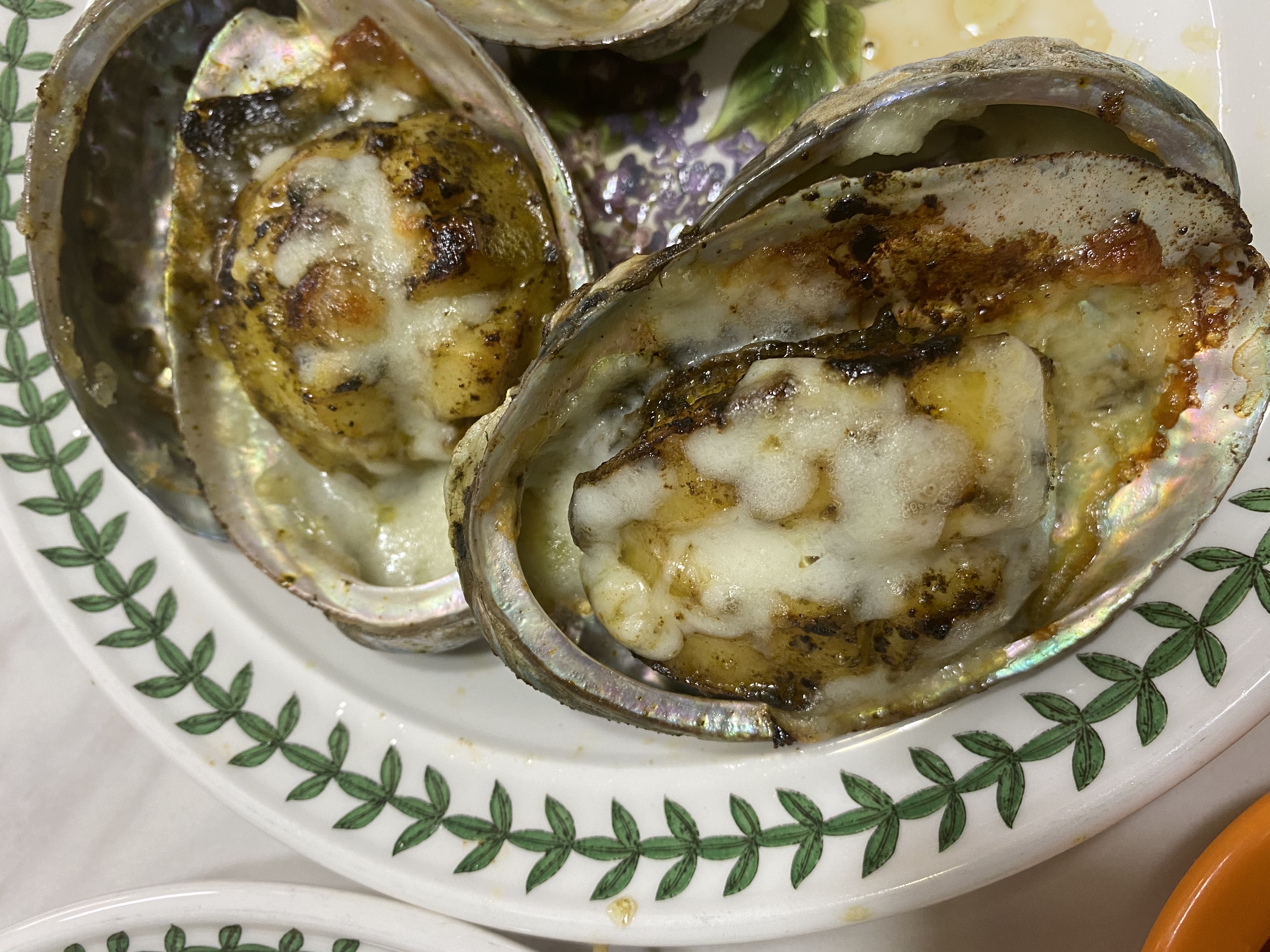 다음엔 다른 후라이팬에 버터를 한큰술 떠서 녹여주며 전복을 구워준다. 앞, 뒤, 옆 모두 골고루 잘 익혀준 후 껍데기에 잘 올려준다. 슈레드 치즈나 모짜렐라 치즈를 덮어 오븐에 250도 5분~7분정도 (치즈가 잘 녹아 덮을정도) 구워준 후 꺼낸다. 이때 전복도 더 익기 때문에 더 맛있어진다.