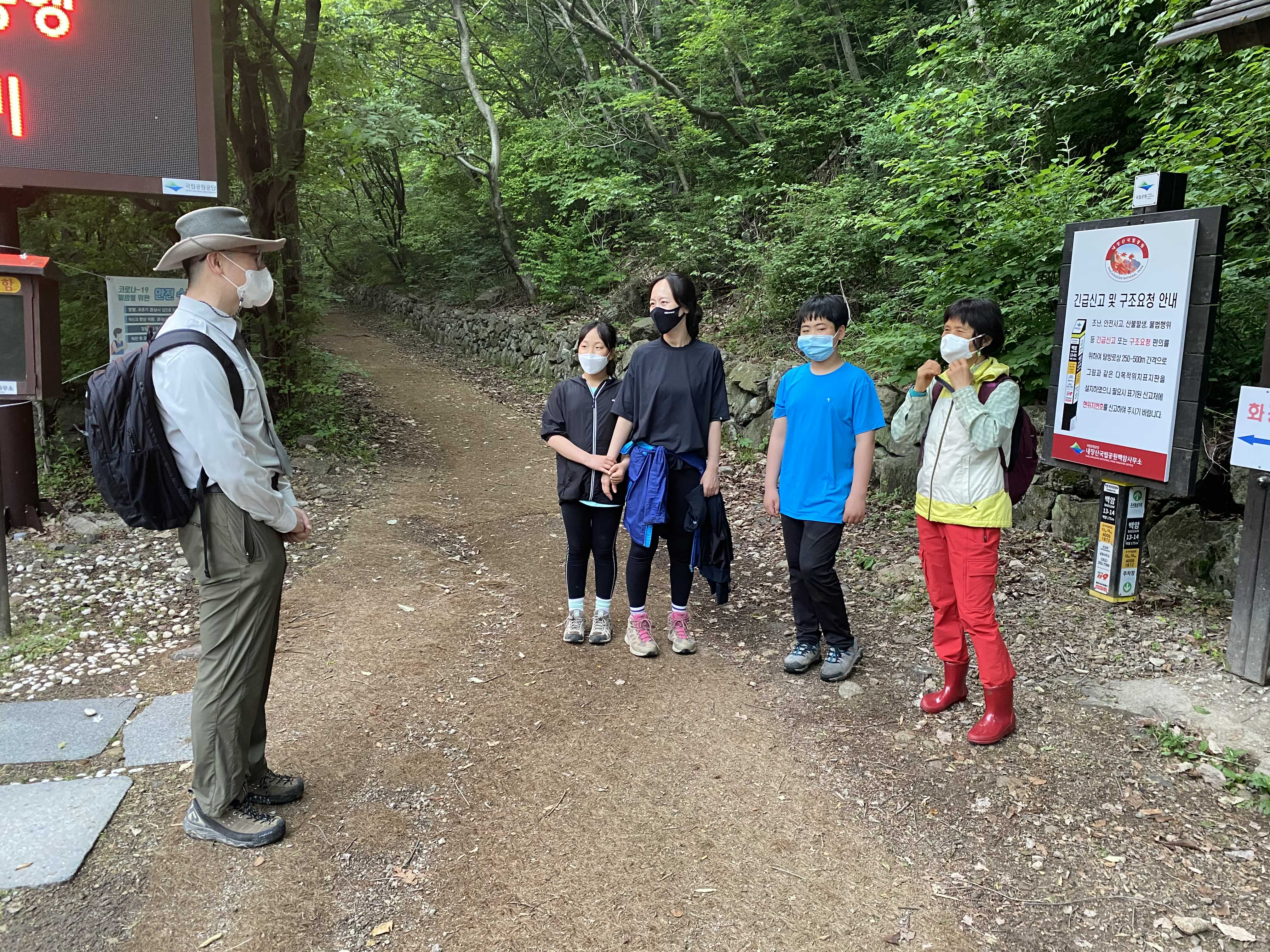 먼저 날씨와 예약 일정을 확인해야 하는데 비가 예보되어 우의 4벌을 챙긴 후 산행을 준비했다. 아이들도 신발이 젖지 않도록 방수 등산화를 착용하도록 했다. 예약은 아래 국립공원공단 예약시스템에서 신청하면 되는데 문자로 예약결과가 전송된다.