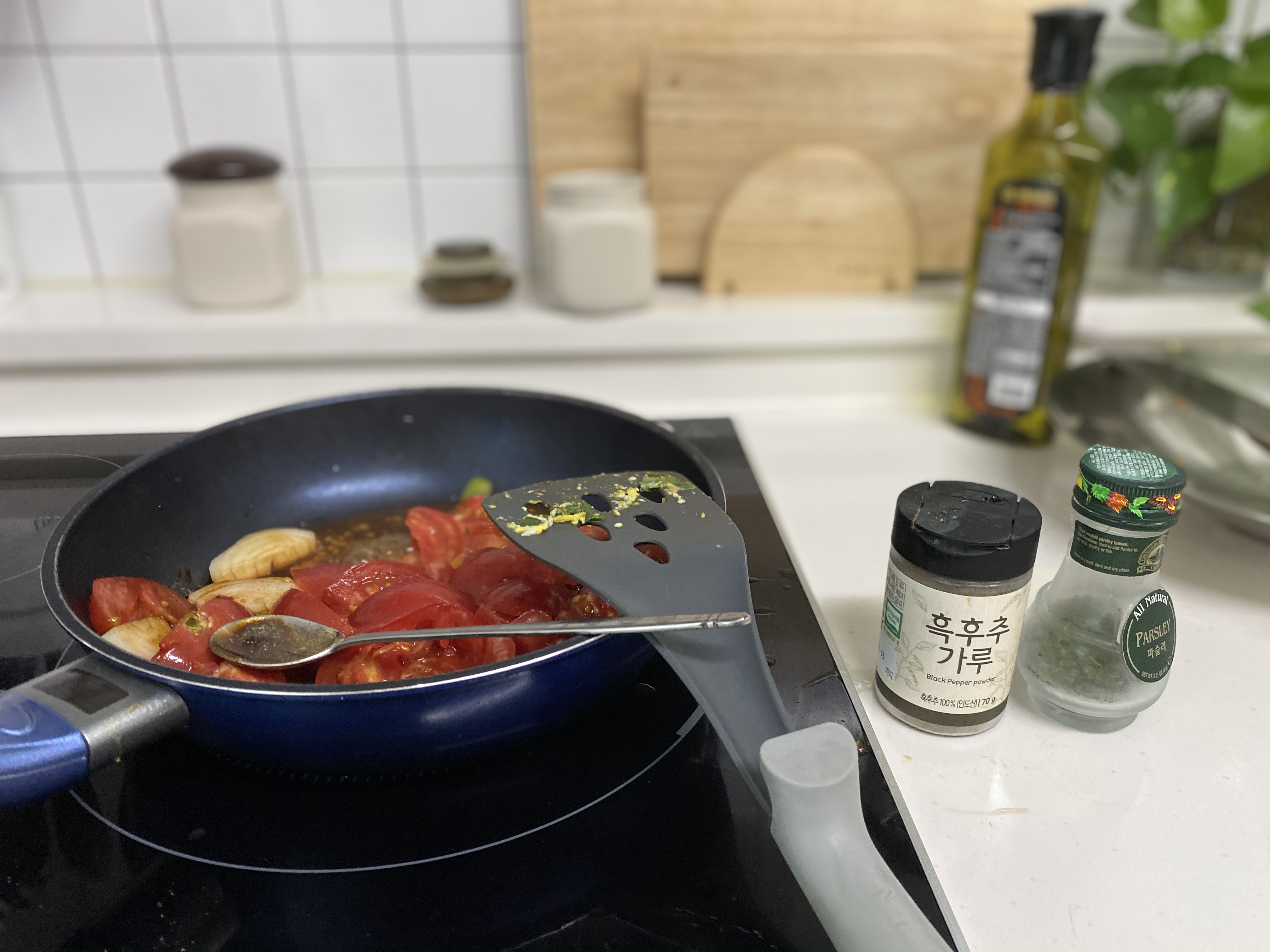 맛있는 아침을 토마토 달걀볶음으로 시작한다. 유후~