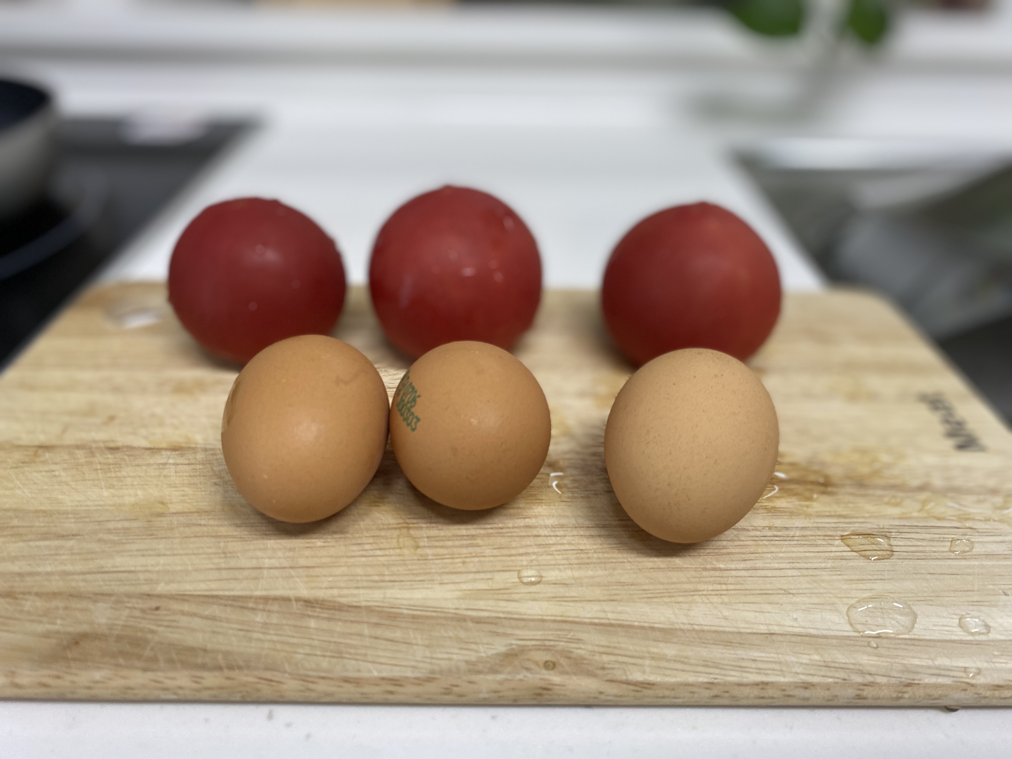아래 사진처럼 준비물도 굉장히 간단해서 허기진 아침 메뉴로 딱 좋은 것 같다. 신선한 유정란과 잘 익은 숙성 토마토로 아침을 활기차게 시작해보자. 아이들에게 맛있는 음식을 해준다는 것은 참 어렵고도 즐거운 일이다. ^^