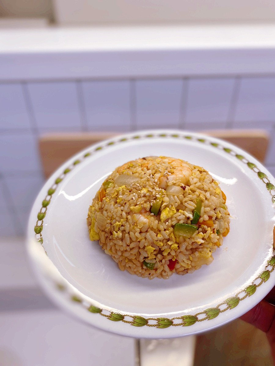 마지막에 참기름을 한 스푼 넣고 볶아주면 완성. 동그란 밥그릇에 익은 새우부터 넣고 밥을 꾹꾹 눌러 담는다. 뒤집어서 그릇에 플레이팅하면 끝이다. 깨소금도 위에 뿌려주고. 물론 여기에 취향에 따라 케첩이나 소스를 뿌려서 먹거나, 짜장면과 함께 먹는다면 더욱 맛있는 중식 불맛 새우볶음밥이 된다.