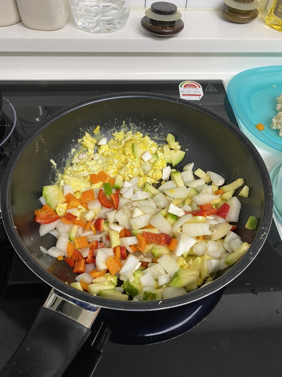 채소들에서 수분이 많이 나올 수 있기때문에 센 불로 계속 볶아준다. 중식 볶음밥은 건조하면서 수분이 없는 고슬고슬한 밥이 맛을 낼 수 있도록 한다.