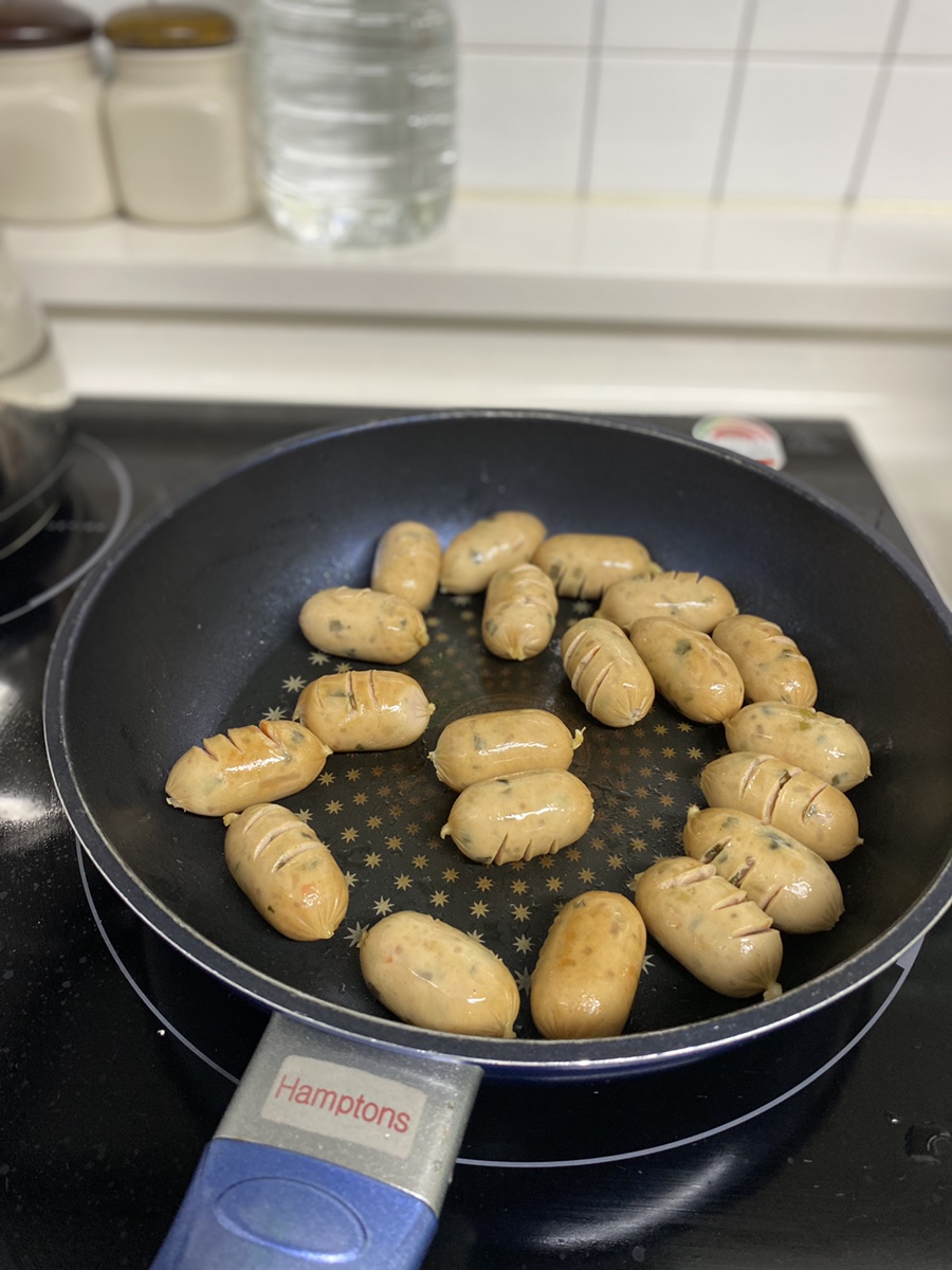 비엔나 소세지 야채볶음의 가장 아름다운 모습은 바로 칼집난 소세지 모양일 것이다. 소세지에 예쁘게 칼집을 내주고 식용유를 팬에 두른 후 소세지를 볶아준다. 처음엔 센 불로 구워주다가 천천히 불을 줄인다.