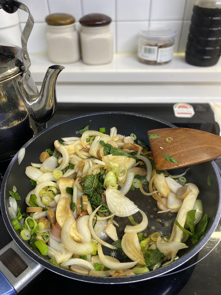 먼저 각종 재료를 준비한 후 파기름을 내면서 각종 야채들을 썰어 넣어주고 볶아줍니다.
