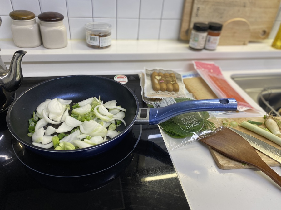 재료 : 어묵, 게맛살, 소세지, 간장, 후추, 소금, 굴소스, 양파, 대파, 새송이 버섯, 깻잎