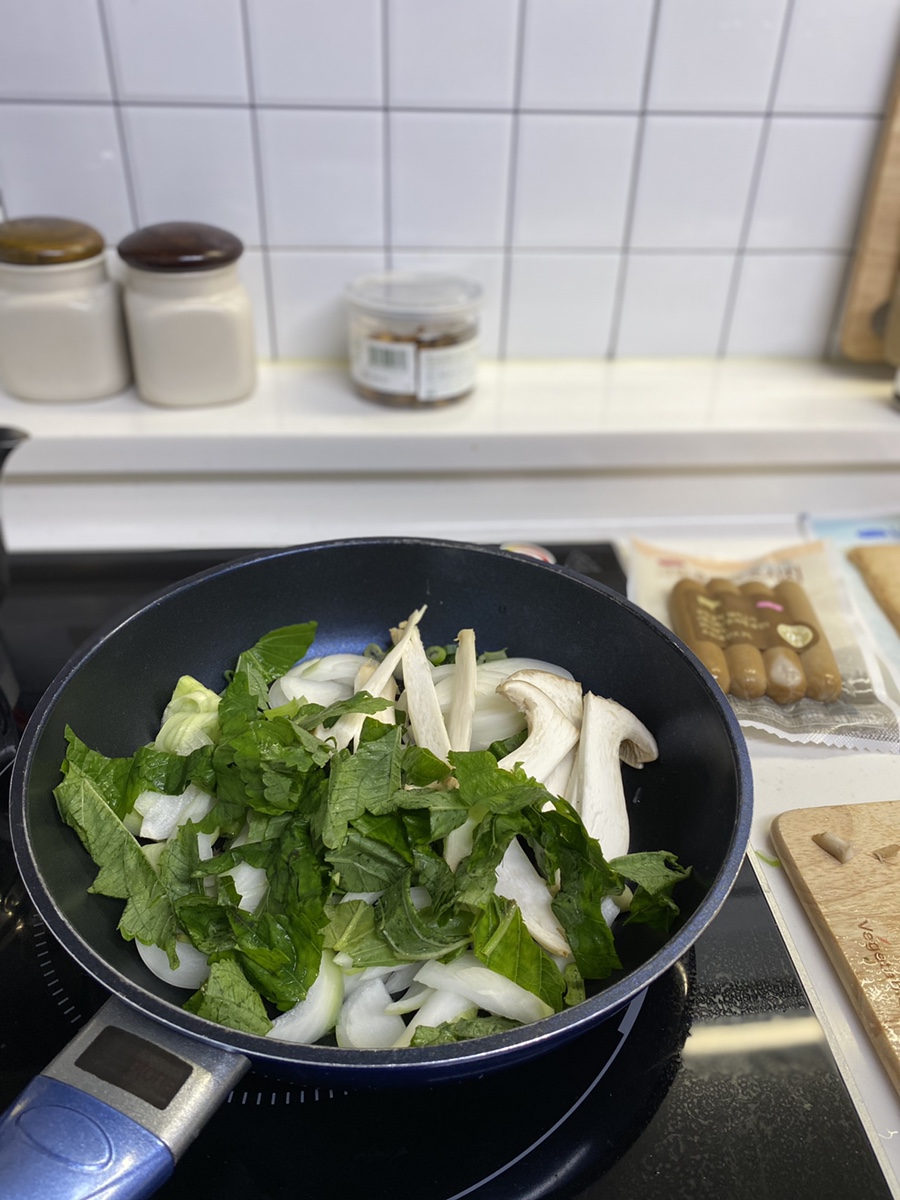 버섯이랑 깻잎도 넣어서 풍미와 영양을 더해주면 영양만점에 아이들이 잘 먹지 않는 것들을 먹게 할 수 있습니다.