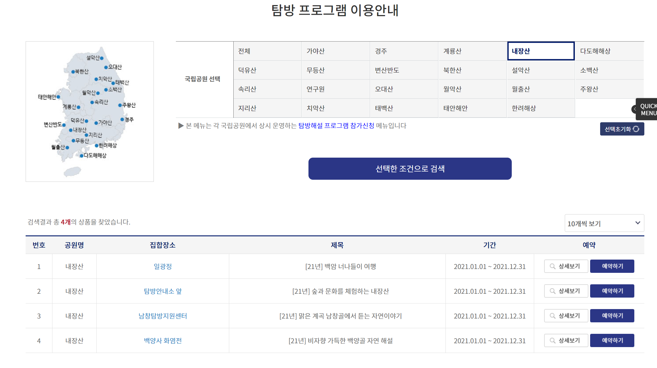 먼저 날씨와 예약 일정을 확인해야 하는데 비가 예보되어 우의 4벌을 챙긴 후 산행을 준비했다. 아이들도 신발이 젖지 않도록 방수 등산화를 착용하도록 했다. 예약은 아래 국립공원공단 예약시스템에서 신청하면 되는데 문자로 예약결과가 전송된다.