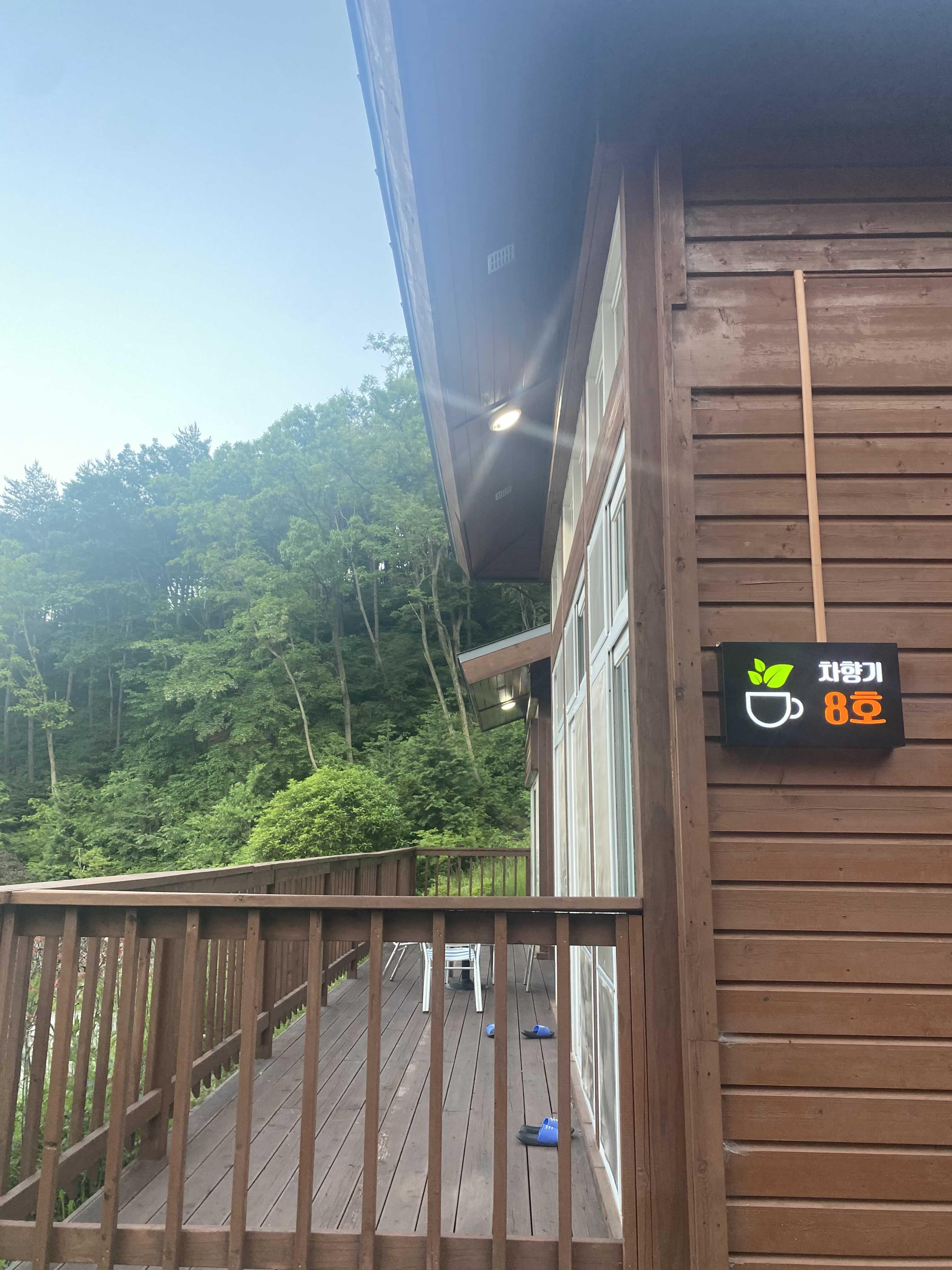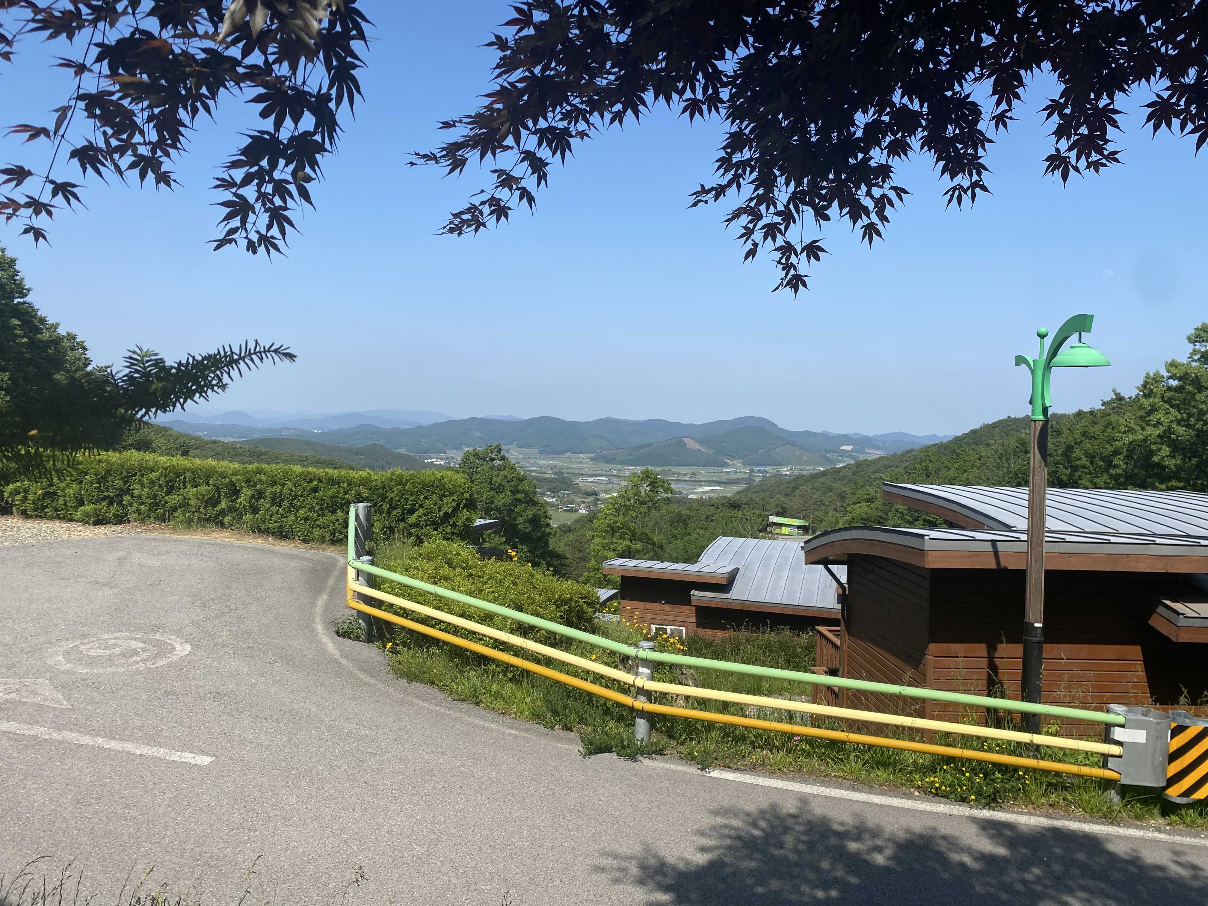 현재 위치는 휴양림 입구에서 좌회전해서 저수지 데크길을 따라 올라가면 다양한 레포츠 활동과 체험 활동이 가능한 공간들이 많이 있다.