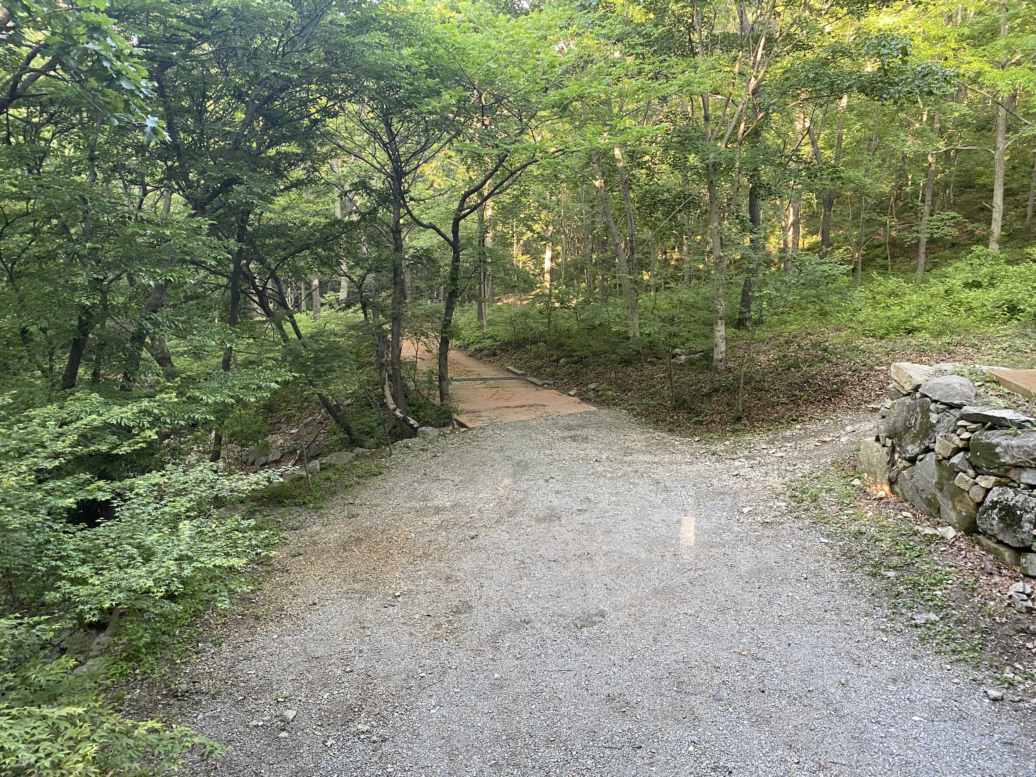 시작점에 작은 계곡물도 흐르고, 아래에서 올라오는 데크길과 위로 올라가는 길이 만나고 있다.
