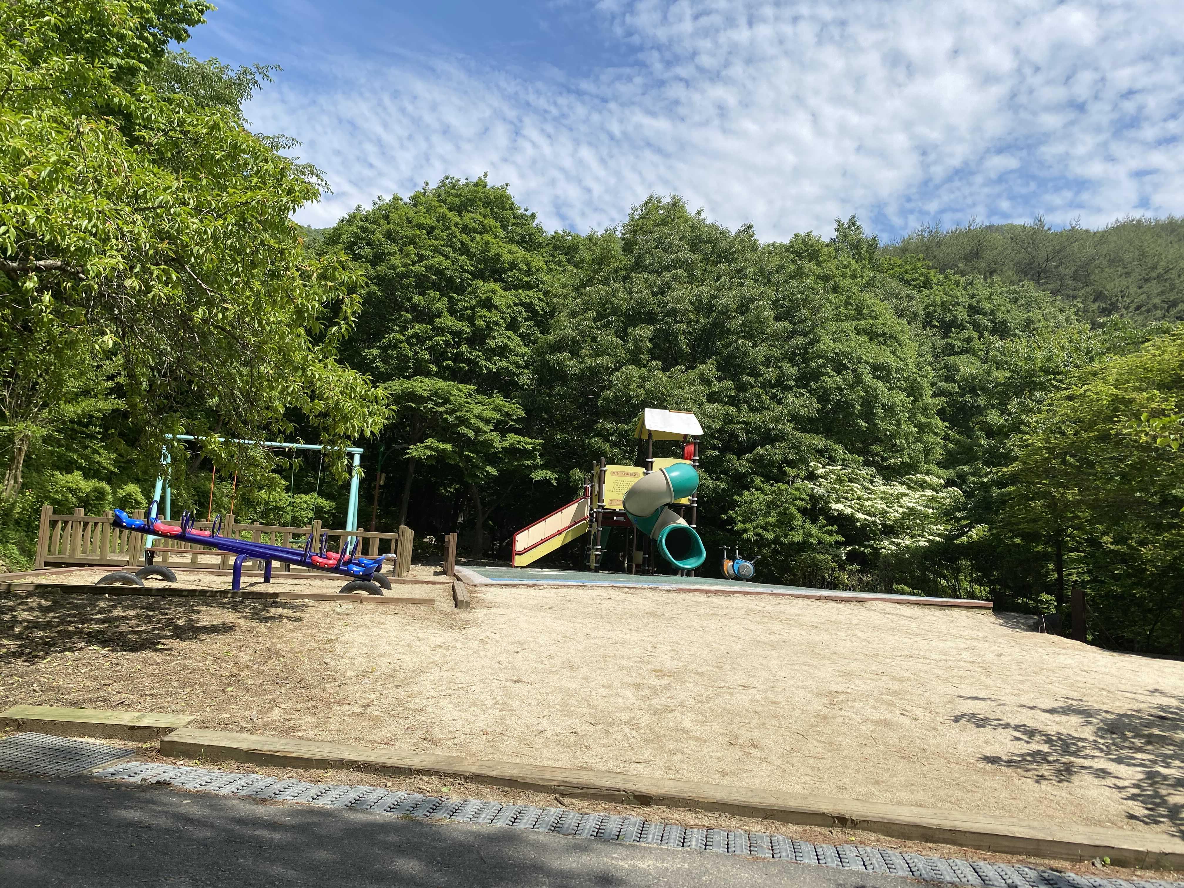 짚라인을 시작으로 곰썰매, 전동휠 체험장, 물놀이장, 무당벌레 모양의 화장실이 나온다. 주차장 바로 옆에 놀이터도 잘 되어 있어서 가족끼리 와서 휴식하기 좋다. 잔디 운동장은 야구나 축구하면서 놀기 딱 좋다. 가끔 소방헬기가 이착륙하니 헬기 소리가 들린다면 안전하게 대피할 것.